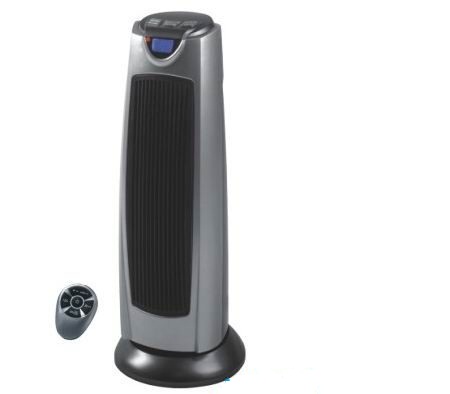 Product SpecificationsCeramic heaters heat instantly by using an element which self regulates the electrical current, this type of heater is ideal for instant heat in a smaller more enclosed space. Powerful: • 2 heat settings (750 and 1500 watts). Functional: • Electronic digital thermostat temperature control with 1 to 8 hours timer. • Space saving housing. • Motorized oscillation base adds greater heating circulation to your room or office environment. • Fan feature for summers. • LCD display for convenient monitoring. • Comes with a remote control. Convenient: • Space saving housing and built-in carrying handle. • Automatic thermostat temperature control keeps heat at desired level. Safe: • Built-in tip-over safety switch shuts heater off if accidentally tipped over. • Internal heat limiting thermostat and overheat protection circuit shuts the heater off when the unit overheats. Economical: • Cut heating bills by heating only the rooms and the areas you choose. • Ideal for mid-size rooms of 215 ft2(20m2) to 323 ft2(30m2) |